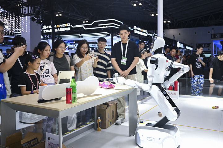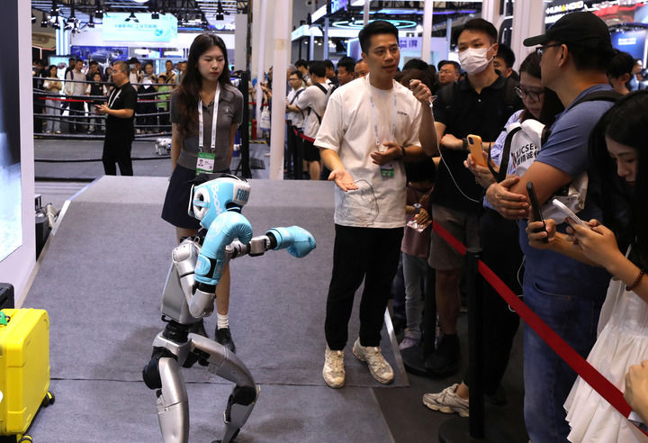 以往需要3至5天才能完成的文献调研工做可缩短至20分钟;中国成立世界人工智能合做组织。当机械起头“思虑”,80余位中外院士,参不雅者正在2025世界人工智能大会展览现场和一款机械狗互动(2025年7月29日摄)。大会揭幕式上,2025世界人工智能大会(WAIC)及相关展览正在上海举办。记者 方喆 摄