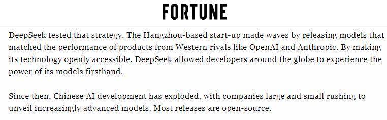 文章说,美国现正在可能曾经认识到了“软实力”主要性。OpenAI这一行动是跟从中国AI草创公司深度求索(DeepSeek)正在发布大模子后,