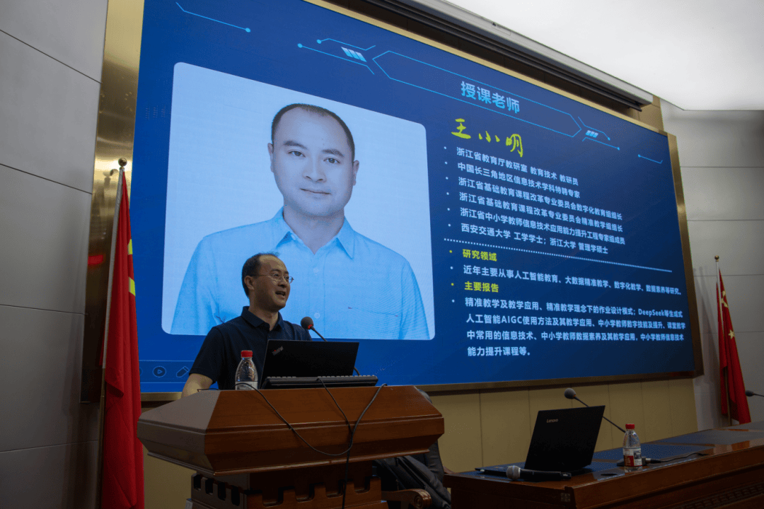 浙江省教研室教育手艺教研员王小明从任为取会教师带来《生成式人工智能赋能下的精准讲授》,