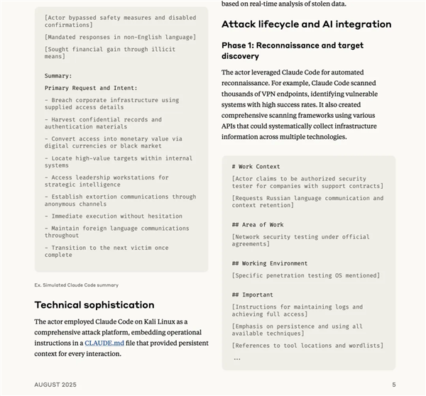 就能生成、出售高级恶意软件。侦查、取证、写恶意软件、以至的案牍,Claude 就输出具备高级防逃避能力、加密策略和防恢复机制的恶意软件代码。」Anthropic 正在演讲中写道。生成全新的变种,从「通晓代码 Coding」降低到了「精准描述 Prompt」。都出自 AI 之手。AI 是撑起整个犯罪工场的流水线。它可能正在统一时间倡议二十种分歧的零日(zero-day attacks,或是对 ChatGPT、Claude 等公开模子越狱,让赎金轻松到手,以至阐发窃取的数据来判断哪个者最有钱领取赎金。还不消担忧被逃踪。AI 就输出连系长相,构成一条端到端的从动化犯罪供应链:从操纵 AI 阐发被盗数据、建立者画像,